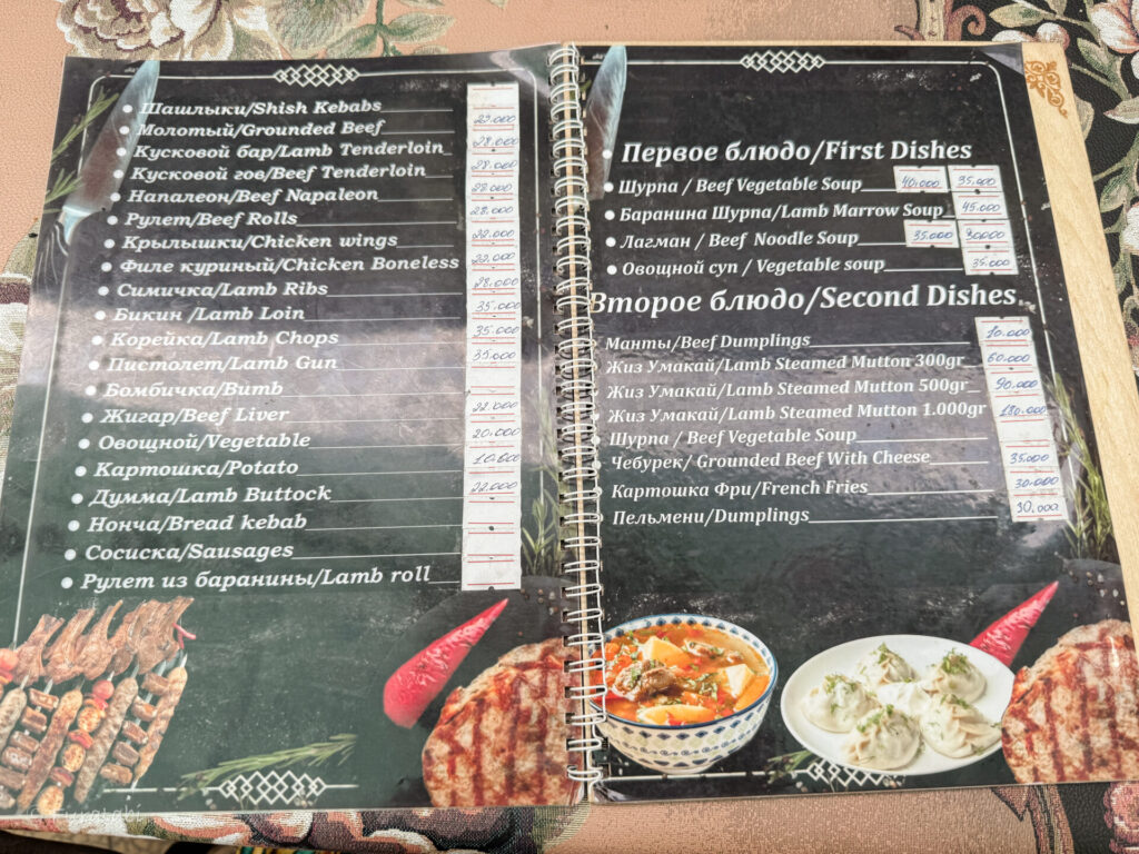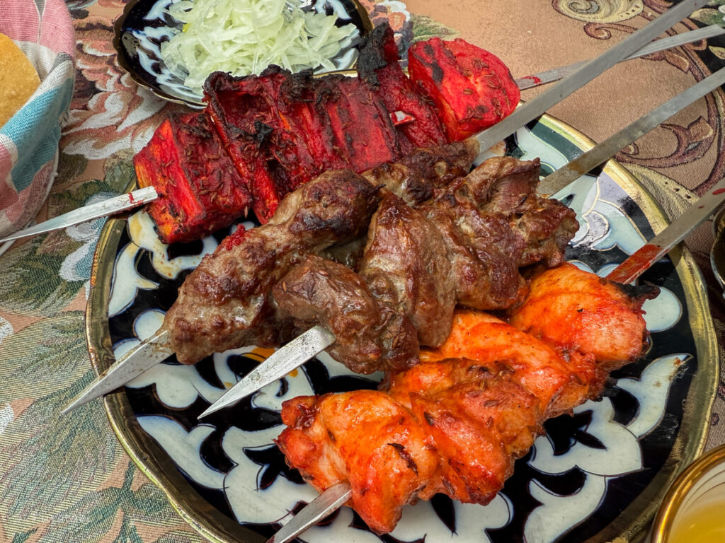 いただいたのは、ラムテンダーロイン、ビーフ、チキンなど。お肉はどれもジューシーでとっても美味しいです。中でも、ラムテンダーロインは、臭みがなく、柔らかくておすすめです!(ウズベキスタンは、ラムよりビーフの方が臭みがある印象)