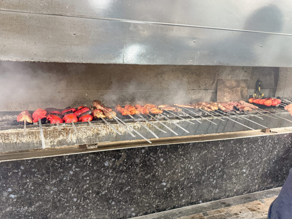 店内に入ると、ショーウィンドウに並んだ具材、そしてモクモクと煙を立てながら焼いている様子が目に入ります!