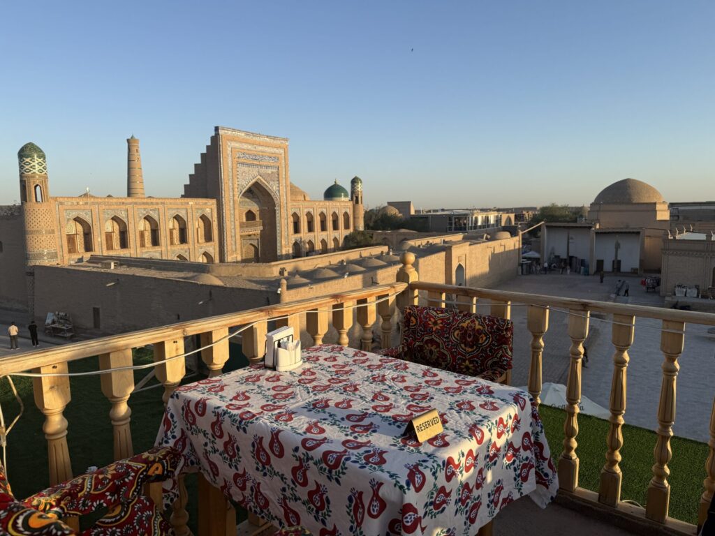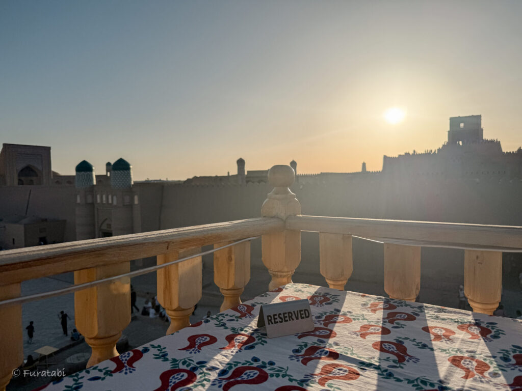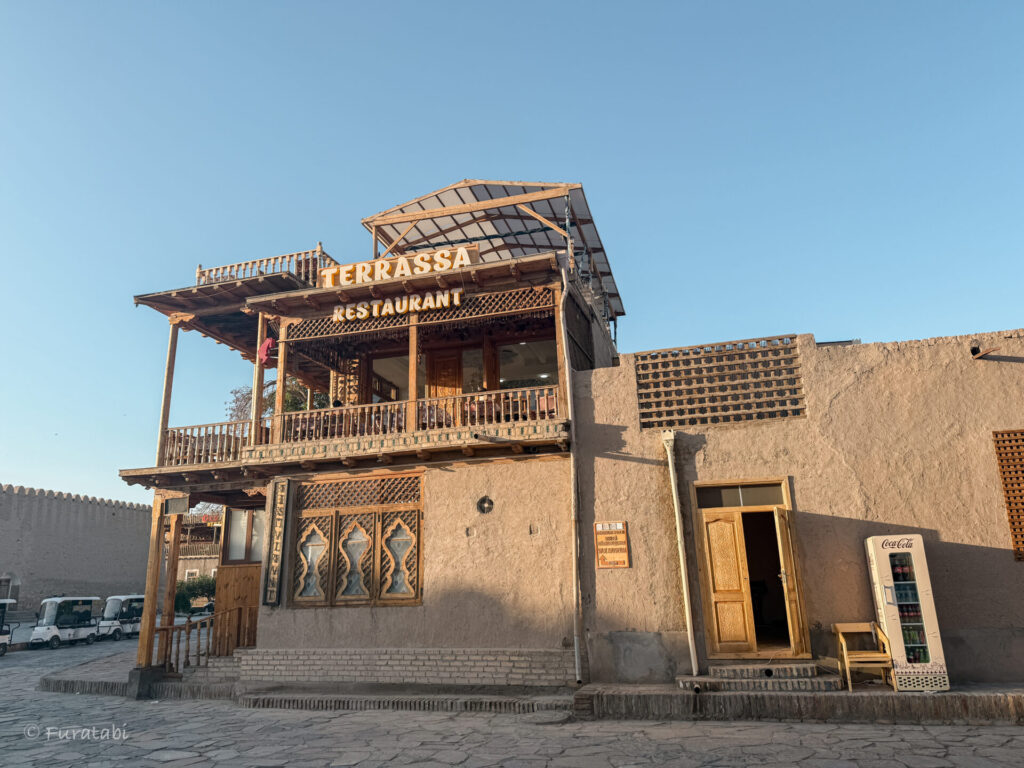 テラッサカフェ & レストランは、ヒヴァの旧市街(イチャン・カラ)の中心にあるウズベキスタン料理のレストランです。ルーフトップテラスにも席があり、絶景を見渡しながら食事を楽しむことができます。
