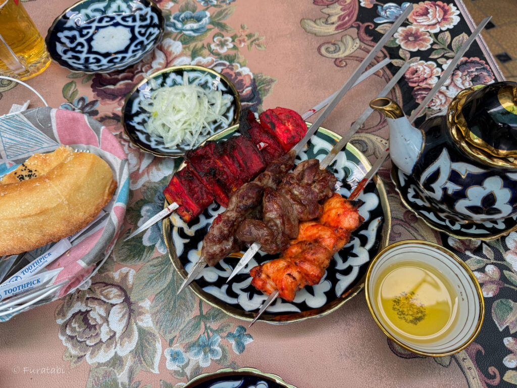 おすすめのレストランは、サマルカンドにある「シャシリク・ヌール(Shokhrukh Nur)」。ジューシーなラムのシャリリクがイチオシです!