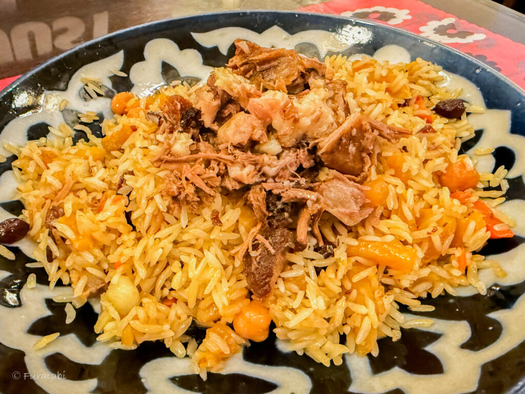 一方、ブハラのプロフ(オシュソフィ)は、具材を炒めるのではなく、茹でてからお米を炊き上げ、最後に油を少量かけて作られるので、他の地域のものに比べてあっさりしています。油っぽいのが苦手な場合は、ブラハでプロフにチャレンジするのもおすすめです。私もブラハのプロフ専門店ザ・プロフ(The Prov)で食べたものが、ウズベキスタン旅行をとおして一番美味しかったです。