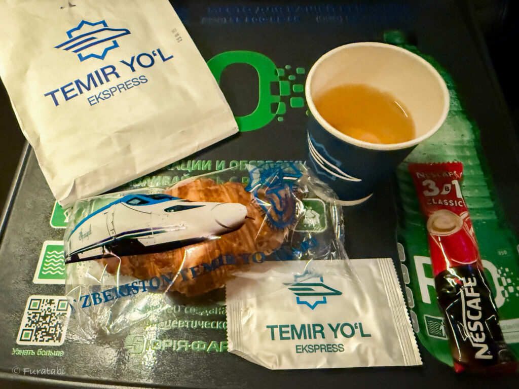 2025年4月に乗った、タシュケント→サマルカンドのアフラシャブ号(Afrosiyob)の様子です。所要時間は、時刻表通りの2時間20分。エコノミークラスで、270,000 sum(3,100円)でした。